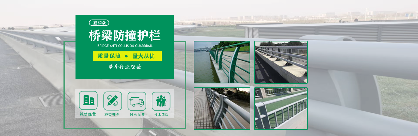 山東鑫和眾金屬制品有限公司主要產(chǎn)品有防撞護欄,橋梁護欄,道路護欄,河道護欄,不銹鋼護欄等護欄。提供設(shè)計方案,一站式定制,包您滿意價格優(yōu)惠,歡迎來電咨詢! 公司常年從事銷售護欄防撞護欄,橋梁護欄,道路護欄,河道護欄,不銹鋼護欄,橋梁鋼護欄,河道燈光護欄等。產(chǎn)品廣泛應(yīng)用于橋梁、河道、旅游景區(qū)、道路、公路、公園、小區(qū)、景觀、道路防撞等領(lǐng)域。 公司產(chǎn)品均采用優(yōu)質(zhì)不銹鋼材料,符合相關(guān)標(biāo)準(zhǔn)。各種型號不銹鋼復(fù)合管及護欄,質(zhì)量嚴(yán)格把控。產(chǎn)品強度高、耐腐蝕、焊接牢固、抗沖擊、性能好,防撞護欄結(jié)構(gòu)簡單、美觀實用大方?! g迎前來訂購!...